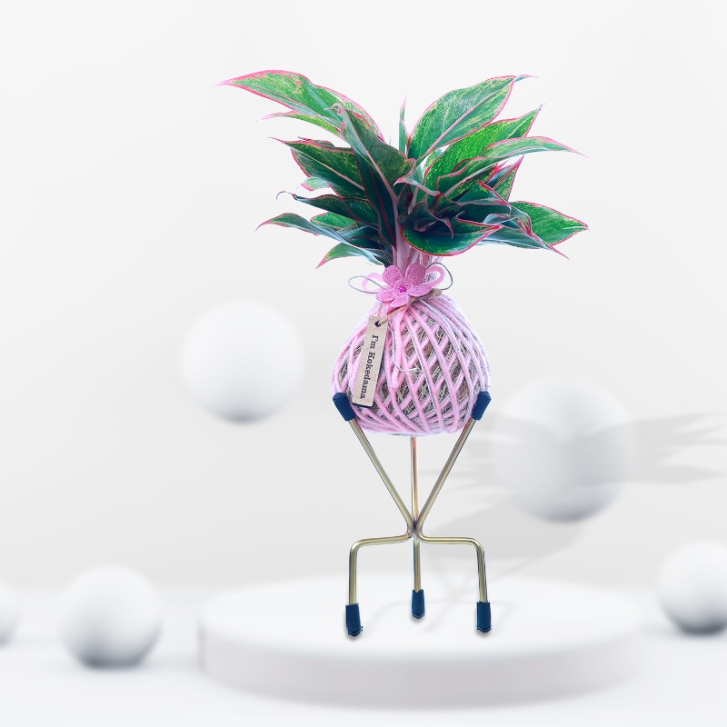 Pink Aglaonema Bouquet Plant Kokedama Pink Aglaonema Bouquet Plant Kokedama